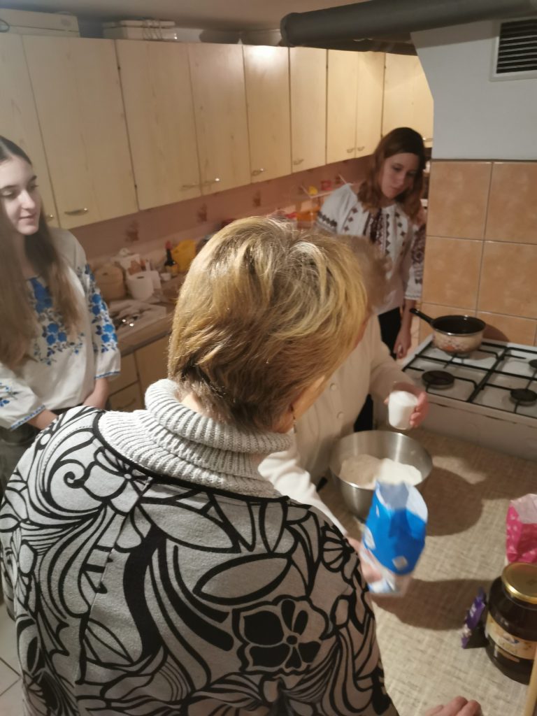 Tego dnia osoby uczestniczące w wydarzeniu, w tym także nasze nastoletnie gościnie z Ukrainy, pod fachowym okiem Hildegard Ziółkowskiej upiekły pierniczki według przepisu mamy Hildegard – Marty Kamiński. Przepis liczy sobie co najmniej sto lat i jest przekazywany ustnie w rodzinie Hildegard Ziółkowskiej. Dziękujemy za podzielenie się nim!