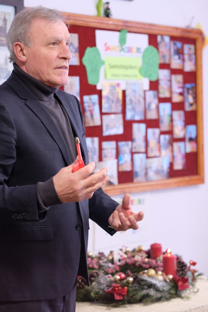 Spotkanie otworzył m.in. pastor Waldemar Eggert, który uroczyście zapalił pierwszą świecę na wieńcu adwentowym. To wieniec, który grupa uplotła podczas poprzedniego spotkania. Pastor powiedział także kilka słów o symbolice wieńca i poszczególnych świec. W prelekcji o przesileniu zimowym i historii wieńca adwentowego Olga Żmijewska uzupełniła te informacje wspominając, że wieniec adwentowy jest wynalazkiem protestanckiego teologa z Hamburga, lecz od 1925 roku jest on również elementem katolickich zwyczajów adwentowych. Świece wieńca będziemy zapalali podczas kolejnych zebrań.
