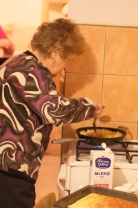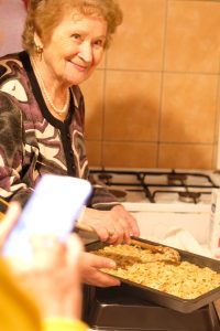 Dom Niemiecki przy ulicy Herdera w Ostródzie to piękny, niemiecki budynek o czterech kondygnacjach, który jest wyposażony m.in. w dwie kuchnie. W jednej z nich grupa wspólnie upiekła tartę z prażonymi migdałami według przepisu Edith Ziółkowskiej (Butschkowski) i według wskazówek Hildegard Ziółkowskiej. To cenna możliwość przekazania kolejnej generacji zwyczajów kulinarnych. W ramach projektu będziemy mieli okazję poznać także wschodniopruski przepis na pierniczki, jaki przekazała Hildegard jej mama. Przepis był dotąd przekazywany wyłącznie ustnie, a projekt stał się motywacją i okazją do spisania receptury. W ten sposób zwyczaje przynależne do naszego regionu pozostaną tutaj żywe – niezależnie od przynależności narodowej czy etnicznej osób, które je praktykują.
