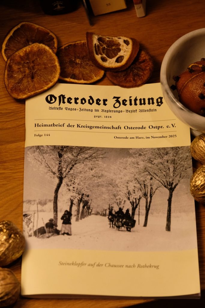 Czasopismo Osteroder Zeitung ukazuje się co pół roku i jest wydawane przez niemieckie stowarzyszenie Kreisgemeinschaft Osterode Ostpreussen, do którego należą osoby pochodzące z przedwojennego powiatu ostródzkiego, a także ich rodziny i potomkowie oraz osoby sympatyzujące. Osoby te mieszkają na różnych kontynentach, a do niedawna był wśród nich także mieszkający w USA najstarszy żyjący absolwent ostródzkiego liceum, pan Prof. Armin Mruck, mecenas liceum i osób uczących się tam. W najnowszym wydaniu czytamy o pożegnaniu panu profesora, który zmarł w wieku przeszło stu lat. Czasopismo jest cenną platformą wymiany, wspomnień, faktów historycznych oraz materiałów wizualnych, w tym historycznych zdjęć i rysunków. Zachęcamy do prenumeraty wydawnictwa (w języku niemieckim).